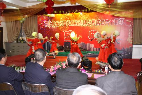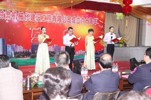 2013年3月22日下午兩點(diǎn)十分,甘肅機(jī)械化建設(shè)工程有限公司成立六十周年慶典大會在公司二樓大會議室舉行。公司領(lǐng)導(dǎo)、部分退休老領(lǐng)導(dǎo)、機(jī)關(guān)全體員工、各基層單位先進(jìn)個人及代表出席大會。大會分兩個階段進(jìn)行,公司黨委書記胡德生同志主持大會。大會第一階段,公司董事長陳想蕃先生向大會作慶典致辭,黨委書記胡德生同志作了重要講話。大會第二階段為公司文藝匯演,匯演共十二個節(jié)目,公司領(lǐng)導(dǎo)及員工歡聚一堂,表演精彩紛呈,現(xiàn)場氣氛非常熱烈,大會持續(xù)了近兩個小時。
